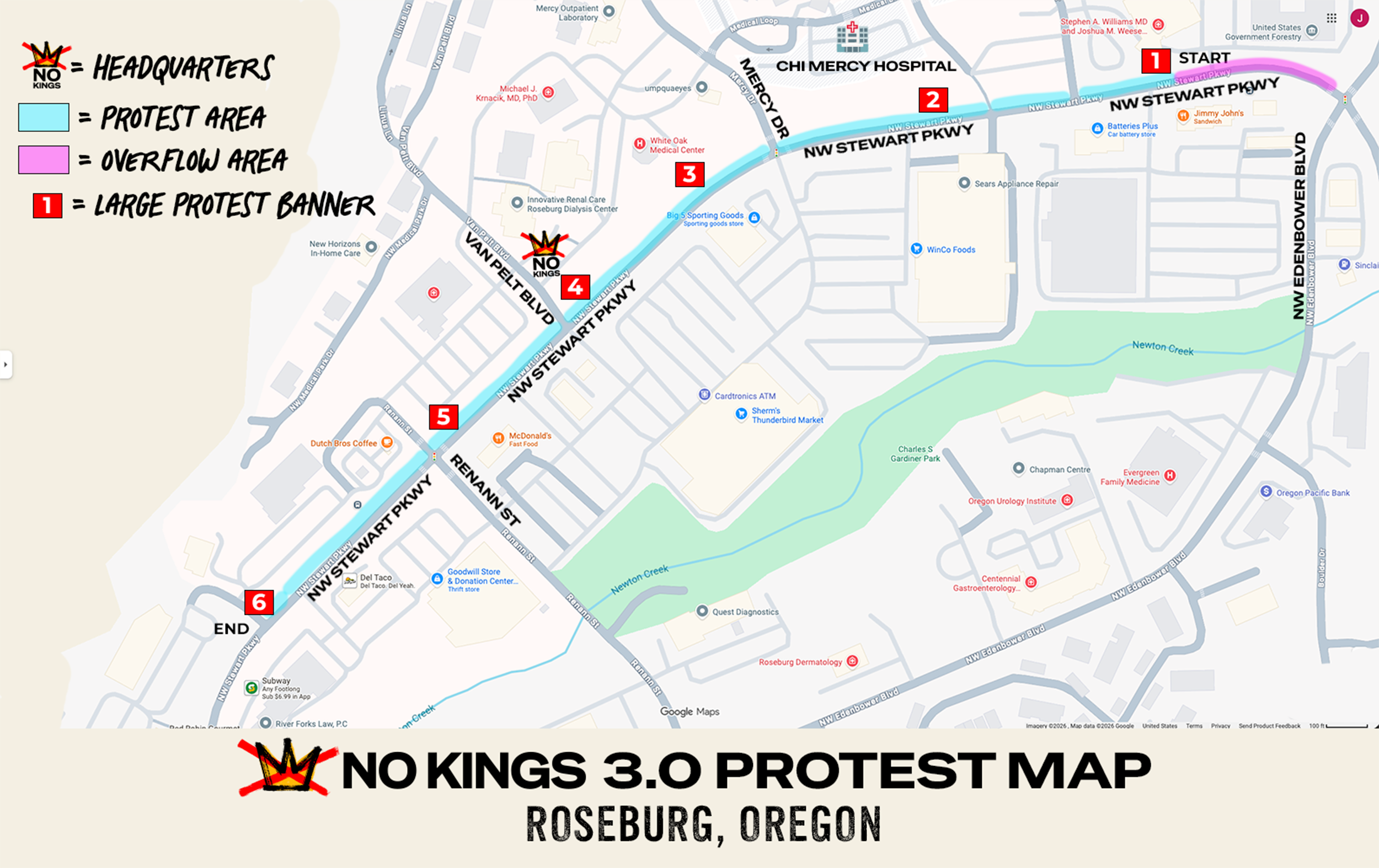 In early 2025, approximately 500 people showed up in Roseburg to protest the direction of this country. In June, that number surged to 2,000. On October 18th, 2025, 2,500 people gathered for No Kings 2.0.